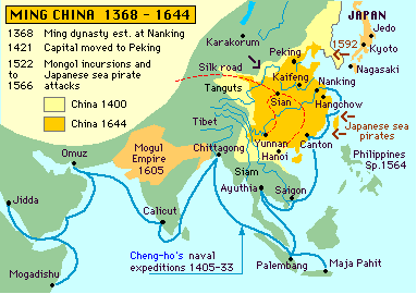 Chinese girl’s effort to find a suitable husband. Early Ming seapower. In part, the growing prosperity of the merchant class in China was due to the continuation of favorable trade policies begun during the T’ang and Sung dynasties and continued under the Mongols. Chinese sea power continued to grow in the early years of the dynasty. The height of this power came under the third Ming emperor, the Yongle emperor. At the same time that he was fighting Mongols on the northern borders, Yongle also sent his Grand Eunuch, Zheng He, on major naval expeditions into Southeast Asia and the Indian Ocean.