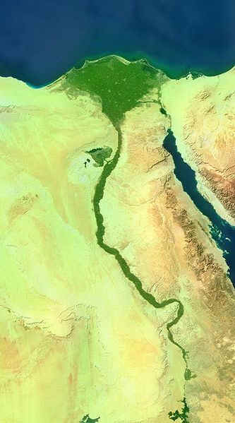 The Nile River and delta surrounded by desert as seen from space. http://upload.wikimedia.org/wikipedia/commons/thumb/5/5b/Nile_Valley.jpg/333px-Nile_Valley.jpg Origins