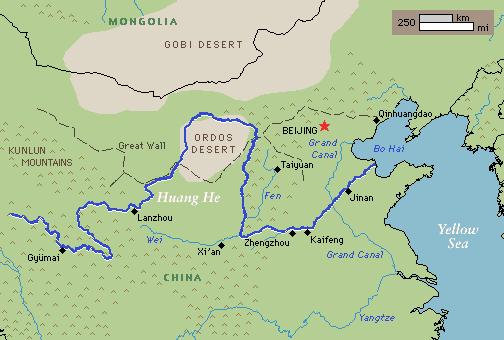 The Huang He near the beginning of the river valley in Qinghai province of northwestern China, http://en.wikipedia.org/wiki/Yellow_River Yangshao